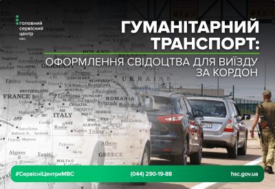 Видача свідоцтва про реєстрацію транспортного засобу для виїзду за кордон гуманітарним автомобілям