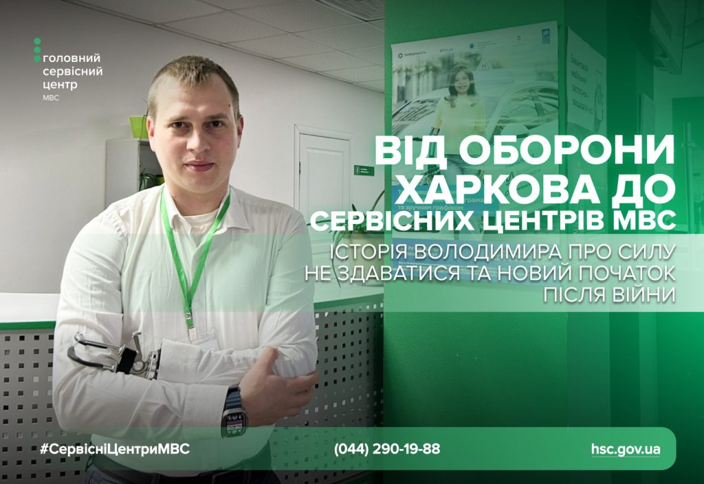 Від оборонця до адміністратора сервісного центру МВС.  Його історія про силу не здаватися. Про новий початок після війни. Про справжнє життя. Володимир професійний військовий. Він навчався у Харківському військовому інституті танкових військ і з перших днів повномасштабного вторгнення брав участь у бойових діях. За його плечима оборона Харкова та контрнаступ під Оріховим на Запорізькому напрямку.