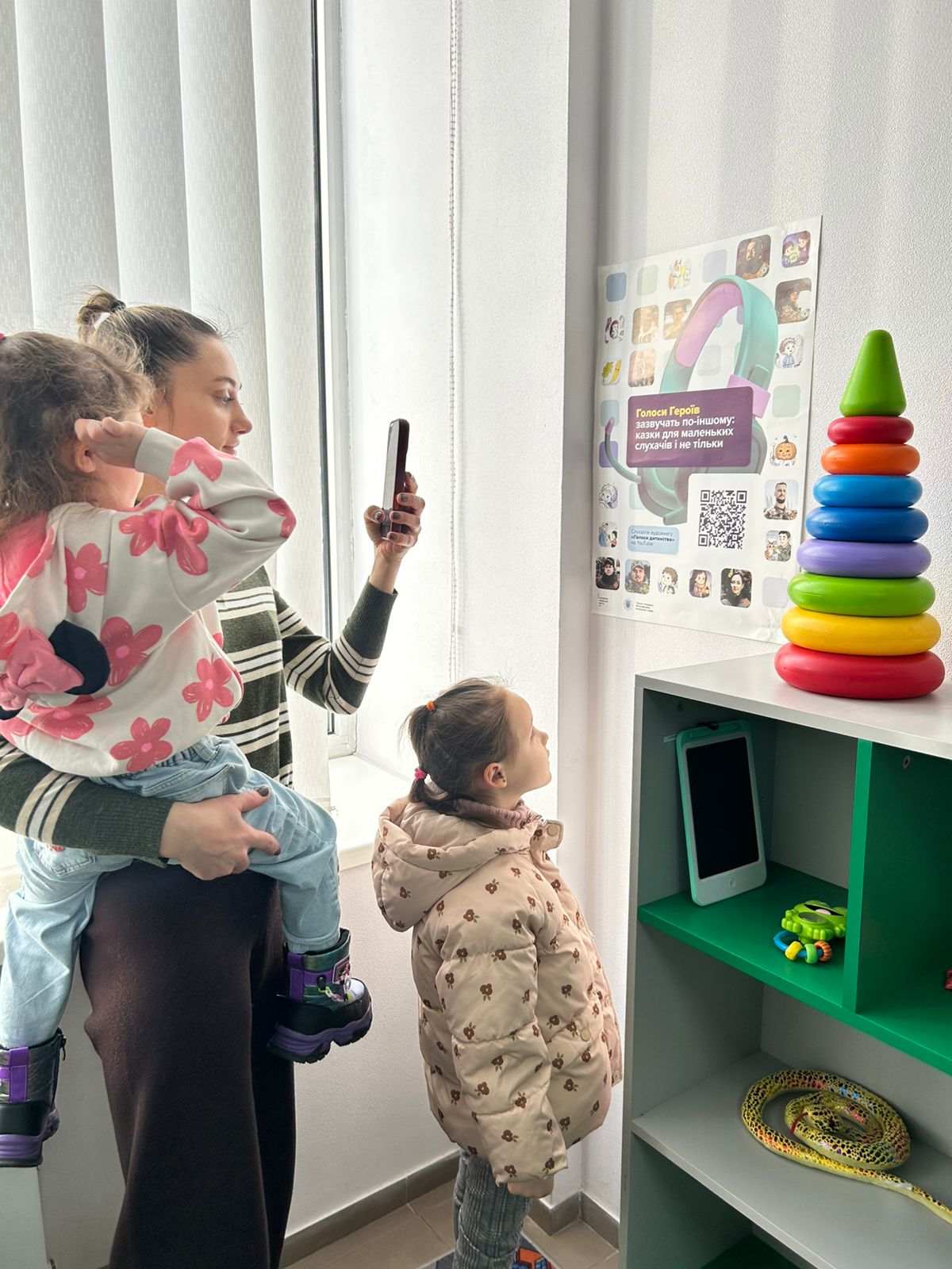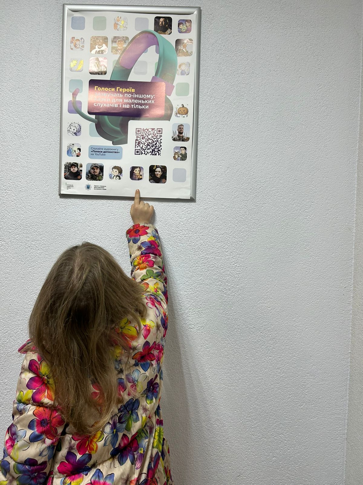 До дитячих куточків сервісних центрів МВС уже передано спеціальні плакати з QR-кодами. Відсканувавши код, маленькі відвідувачі можуть прослухати аудіоказки у виконанні поліцейських, нацгвардійців, прикордонників та рятувальників — людей, які щодня стоять на захисті країни.