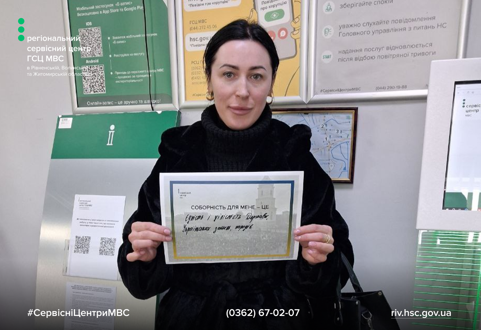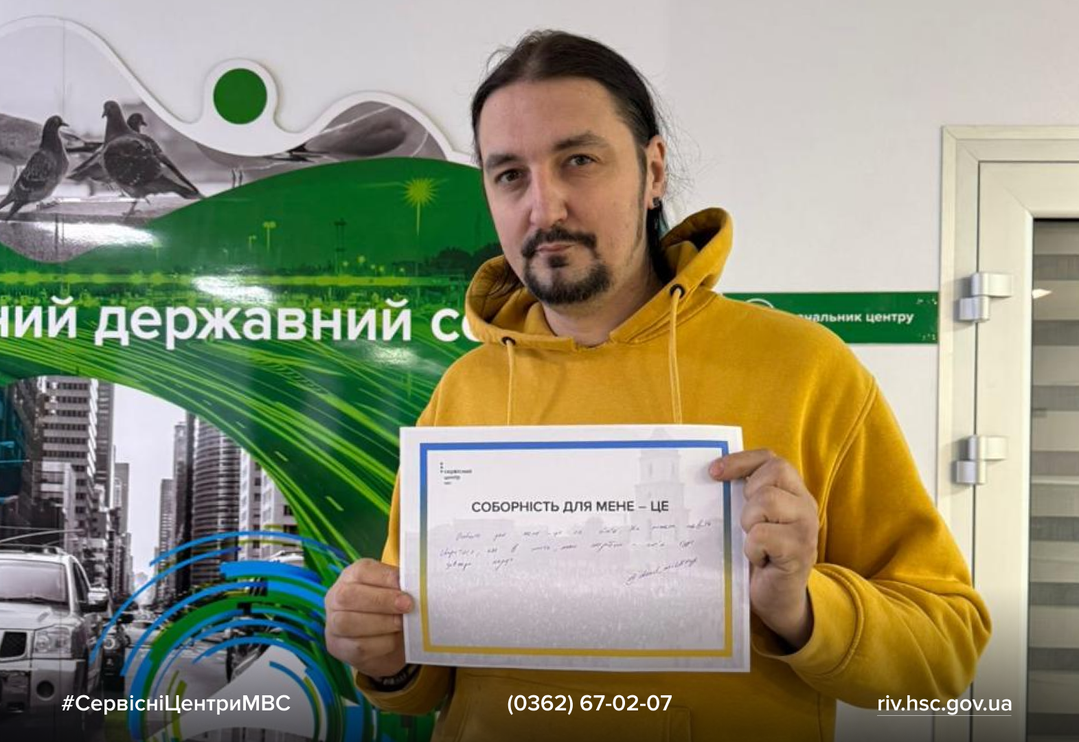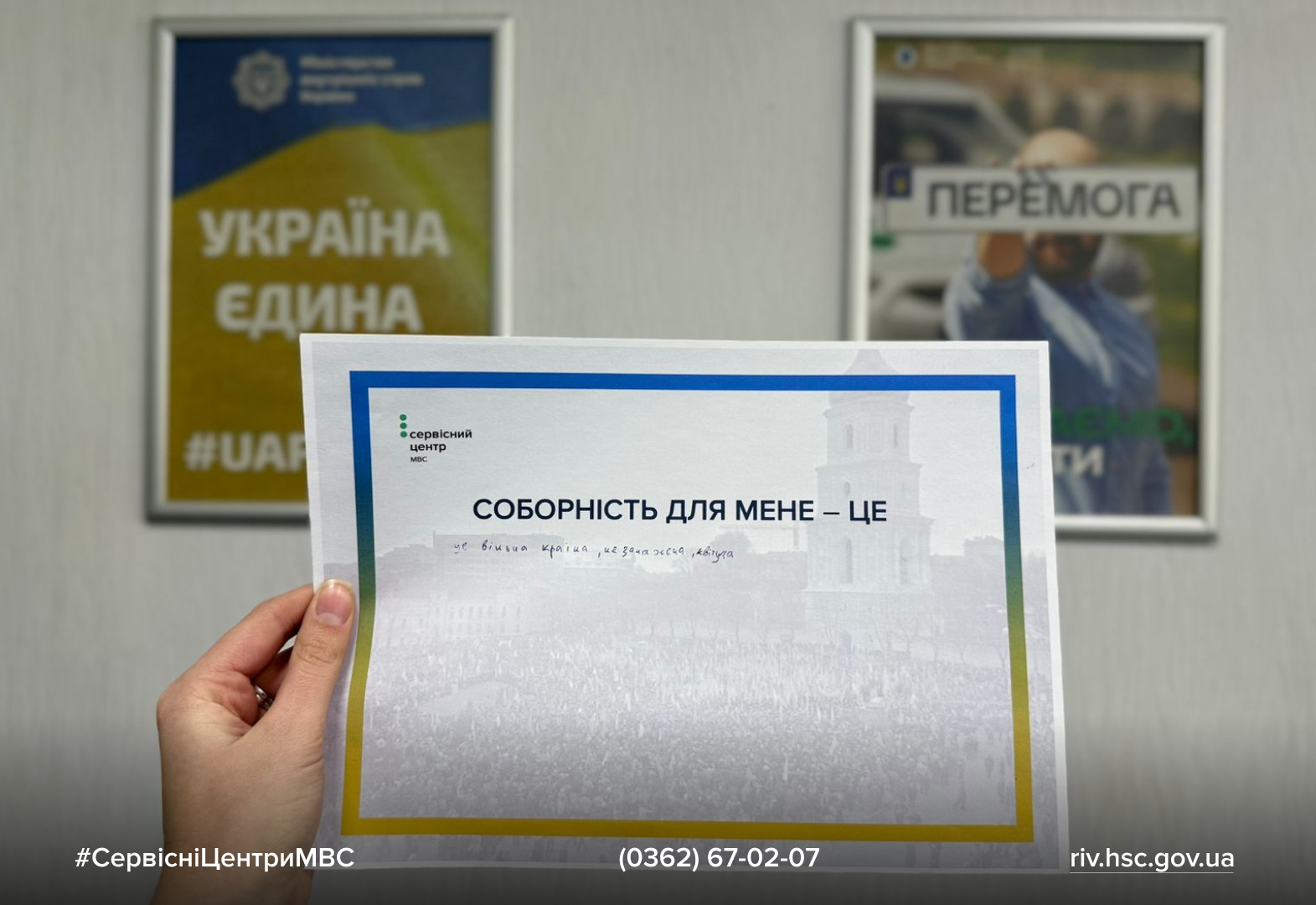 Клієнти сервісних центрів також долучилися до інтерактивної ініціативи, продовжуючи фразу: «Соборність для мене — це…». Після написання власних роздумів учасників фотографували з аркушами, на яких з’являлися прості, але глибокі слова про родину, спільну боротьбу, взаємопідтримку та любов до України.