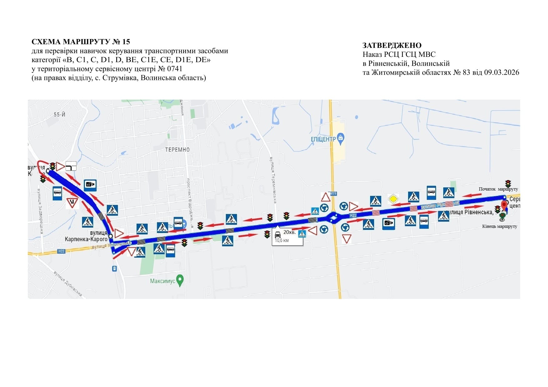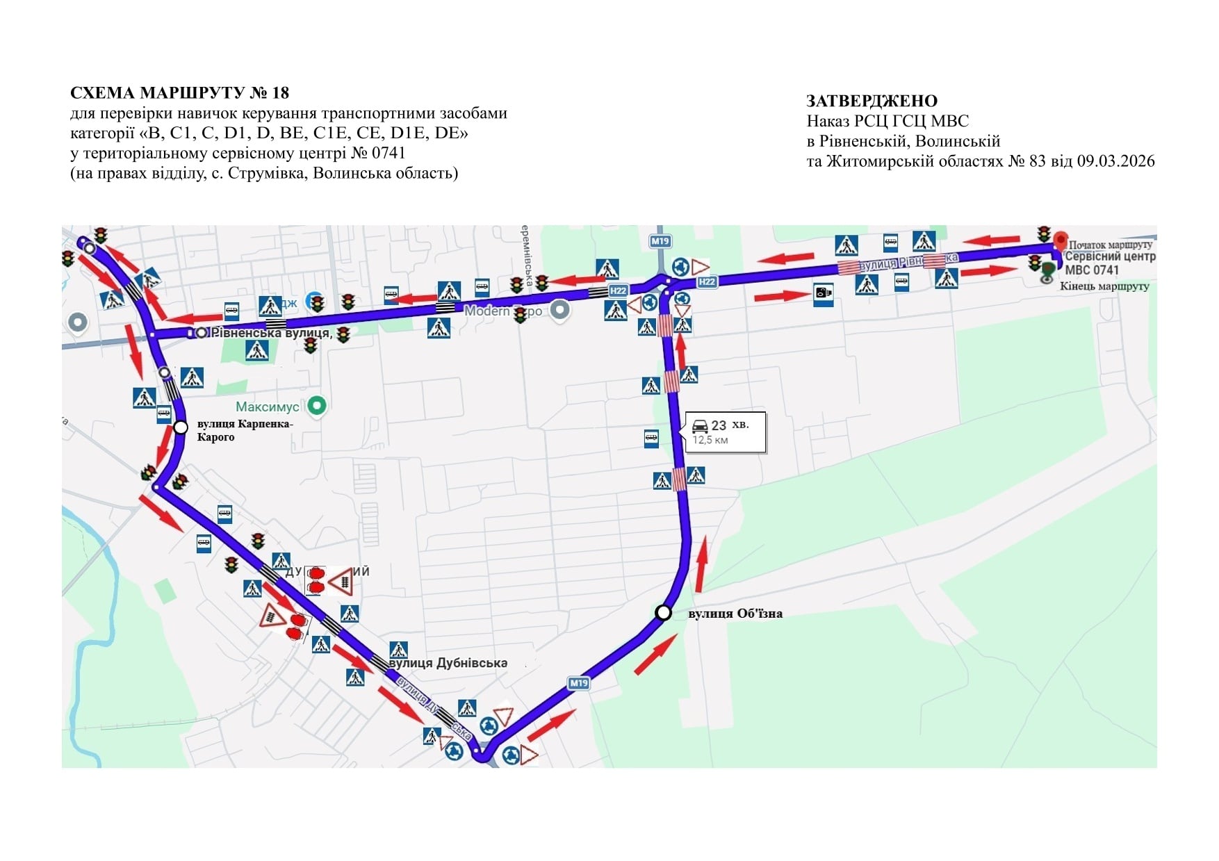 У територіальному сервісному центрі МВС №0741 с. Струмівка, що на Волині збільшили кількість маршрутів для складання практичних іспитів. Якщо раніше їх було дев’ять, то тепер затверджено двадцять. Відповідні схеми руху та опис маршрутів доступні онлайн.
