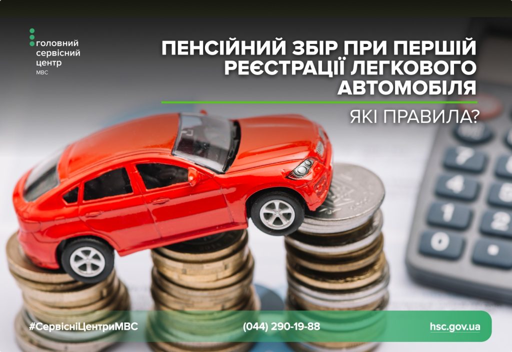 При першій державній реєстрації легкового автомобіля в Україні власник сплачує збір на державне пенсійне страхування. Цей платіж є одноразовим та обов’язковим як для нових транспортних засобів з автосалону, так і вживаних, що були ввезені з-за кордону.