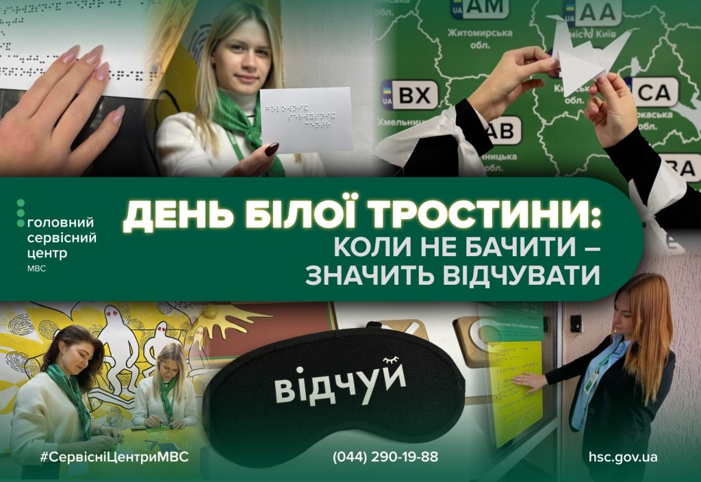 15 жовтня в усьому світі відзначається День білої тростини – символу незалежності та самостійності людей з порушенням зору. Для працівників сервісних центрів МВС ця дата є ще одним важливим нагадуванням: доступ до державних послуг має бути рівним і зручним для кожного громадянина, незалежно від фізичних можливостей. У центрі – людина Сервісні центри МВС продовжують послідовно розвивати інклюзивність державного сервісу, створюючи зручні умови для всіх без винятку. У кожному центрі передбачені: кнопки виклику адміністратора; мінімізація порогів та сходів у приміщеннях; пріоритетне обслуговування; можливість супроводу; інформування зрозумілою мовою. У сервісних центрах МВС ми підтримуємо цінності рівності, відкритості та взаємоповаги – не лише у символічні дні, а щоденно. Детальніше про доступні сервіси для осіб з інвалідністю – у розділі «Безбар’єрність» на сайті Головного сервісного центру МВС. Людяність – рушійна сила технологій Ми живемо в час стрімкого розвитку цифрових сервісів, однак жоден застосунок і жодна технологія – навіть найсучасніший штучний інтелект – не замінить щирої людської допомоги та підтримки. Саме тому сервісні центри МВС не просто надають послуги – ми щодня будуємо сервіс, у якому людина – в центрі уваги. Про що мовчить темрява? Після занурення в темряву працівники сервісних центрів МВС побачили те, що зазвичай лишається поза увагою. Відчули, як змінюється сприйняття простору, коли зникає зір. І зробили важливі висновки: Тростина – це не просто символ, це продовження вказівного пальця людини. Це повноцінний інструмент, який дозволяє незрячим «бачити» простір навколо. За допомогою простукування тростиною, в мозку людини виникають обриси предметів. Вона також допомагає орієнтуватися, відчувати перепони, знаходити дорогу. Необхідно поважати її призначення та не заважати її використанню. Допомога – це завжди діалог. Не варто хапати людину за руку чи нав’язувати допомогу. Варто спершу спокійно підійти та тихо запитати: «Чи потрібна вам допомога?» – і лише після згоди діяти. Уникайте різких та гучних діалогів. Уявіть, що ви сидите з заплющеними очима аж раптом вам кричать щось на вухо. Сучасні технології стають очима для незрячих. Сьогодні існують мобільні застосунки, які дозволяють сфотографувати предмет – і за допомогою голосового опису людина дізнається, що перед нею. А ще – працюють волонтерські сервіси: людина з порушенням зору може зробити фото, подзвонити – і волонтер телефоном пояснить, що це, або як цим скористатися. Це справді відкриває нові можливості. Не паркуйтесь на пішохідних зонах! Це не лише порушення, а й реальна небезпека. Люди з порушенням зору орієнтуються тростиною, і транспортні засоби, залишені на тротуарах, стають неочікуваними перешкодами. Вони можуть травмувати або дезорієнтувати людину. Поважати правила дорожнього руху – це поважати одне одного. Бути уважнішими – наш спільний вибір День білої тростини – це не просто дата в календарі. Це привід замислитися над тим, як ми можемо зробити світ доступнішим і доброзичливішим. Разом ми створюємо державний сервіс, де кожен почувається впевнено, комфортно й безпечно. Консультацію щодо послуг сервісних центрів МВС можна отримати за телефоном (044) 290-19-88 або на сторінках Головного сервісного центру МВС в Фейсбук та Ін